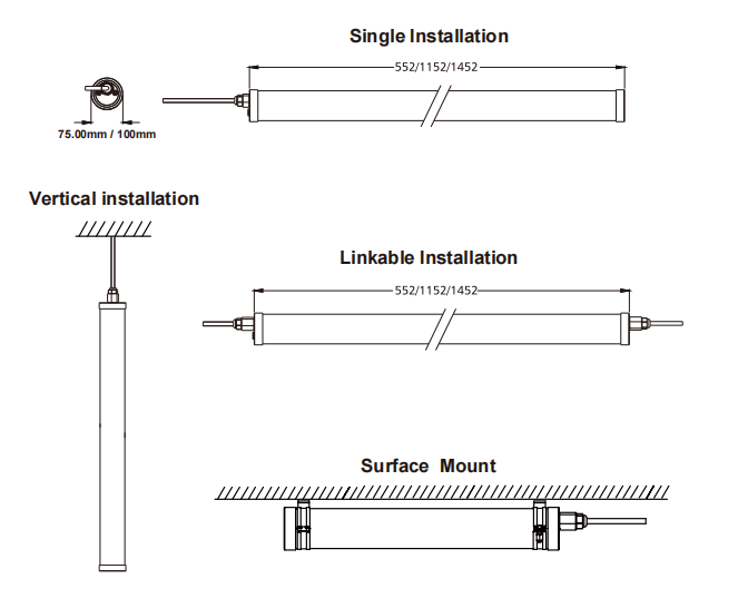 Product Size (mm) | Ø75*552 | Ø75*1152 | Ø75*1452 |